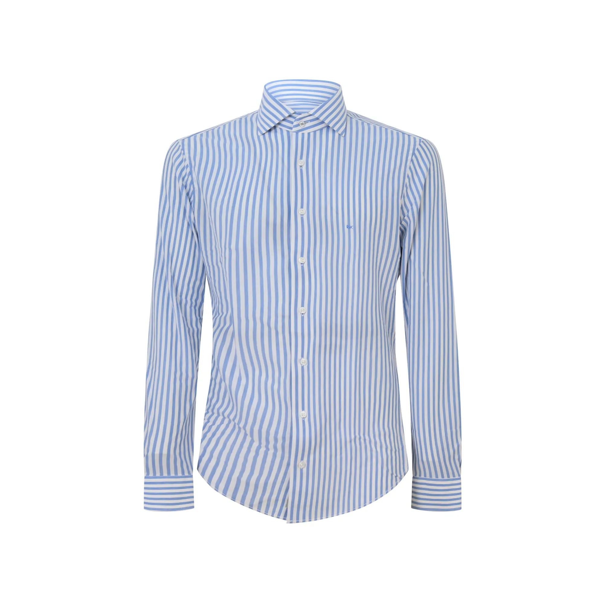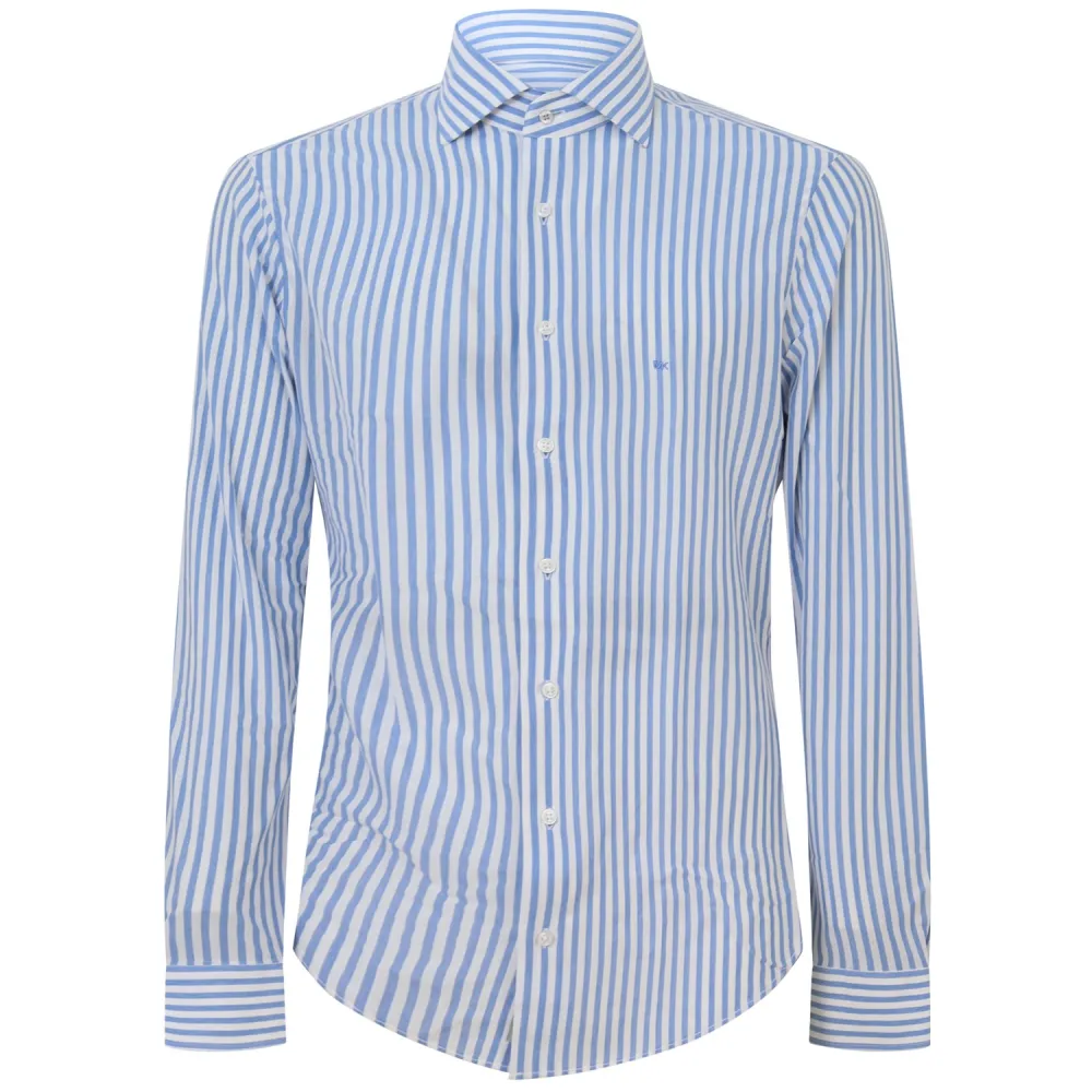 Camicia celeste a righe con mini logo per uomo