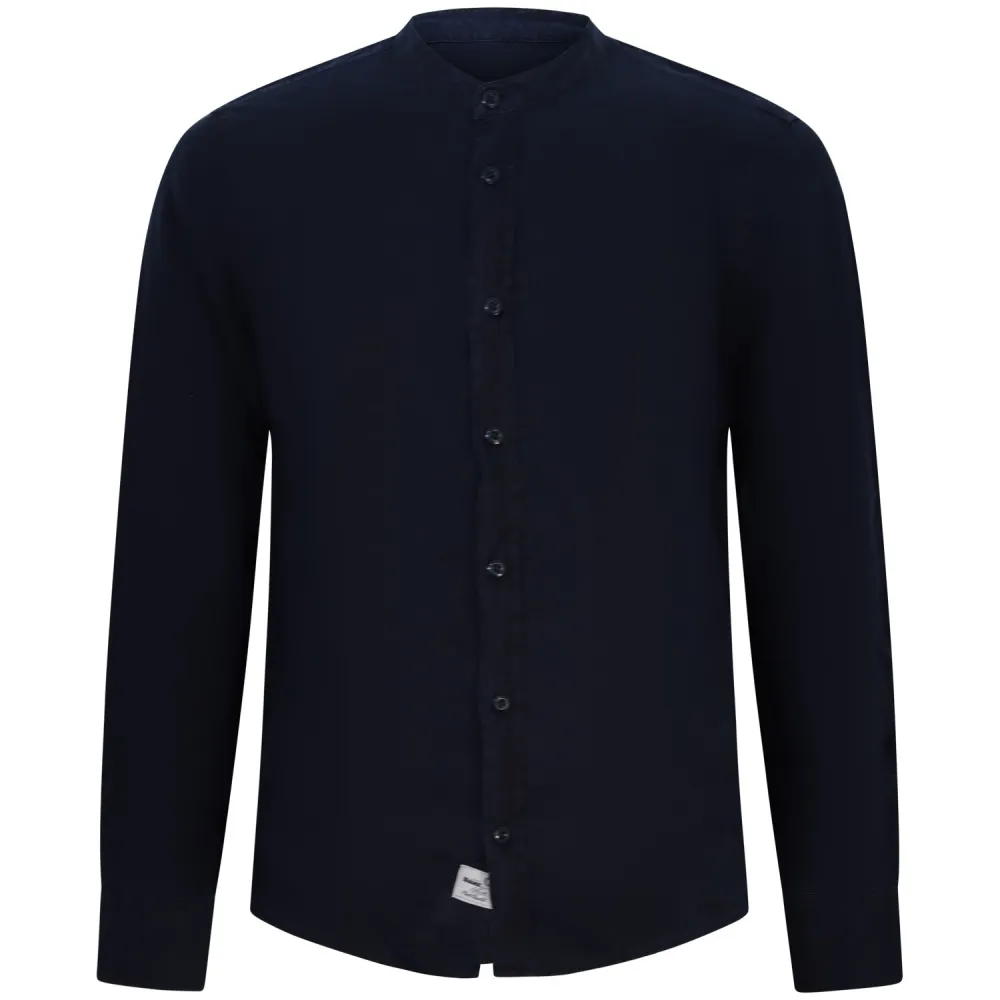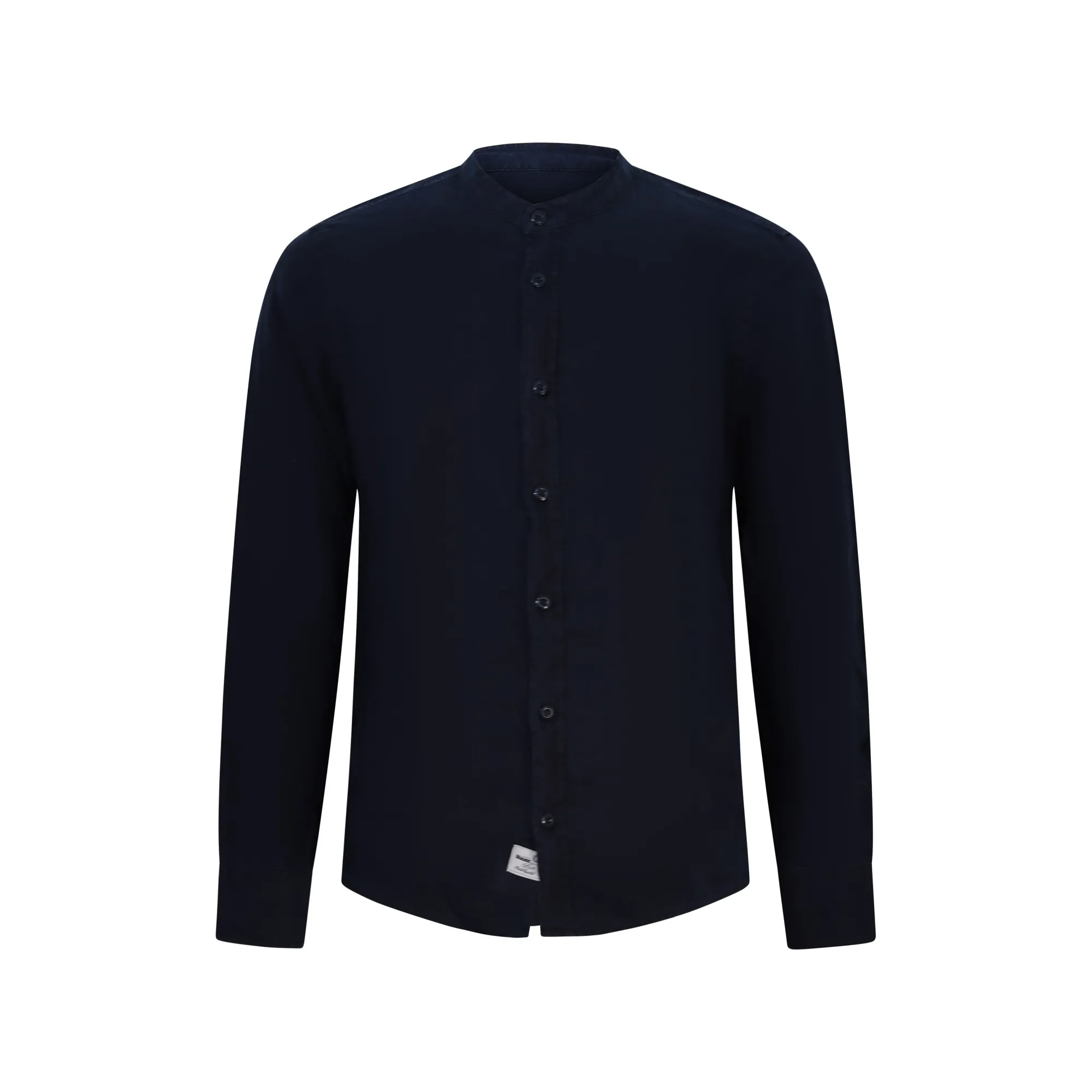 Camicia blu con collo coreano per uomo