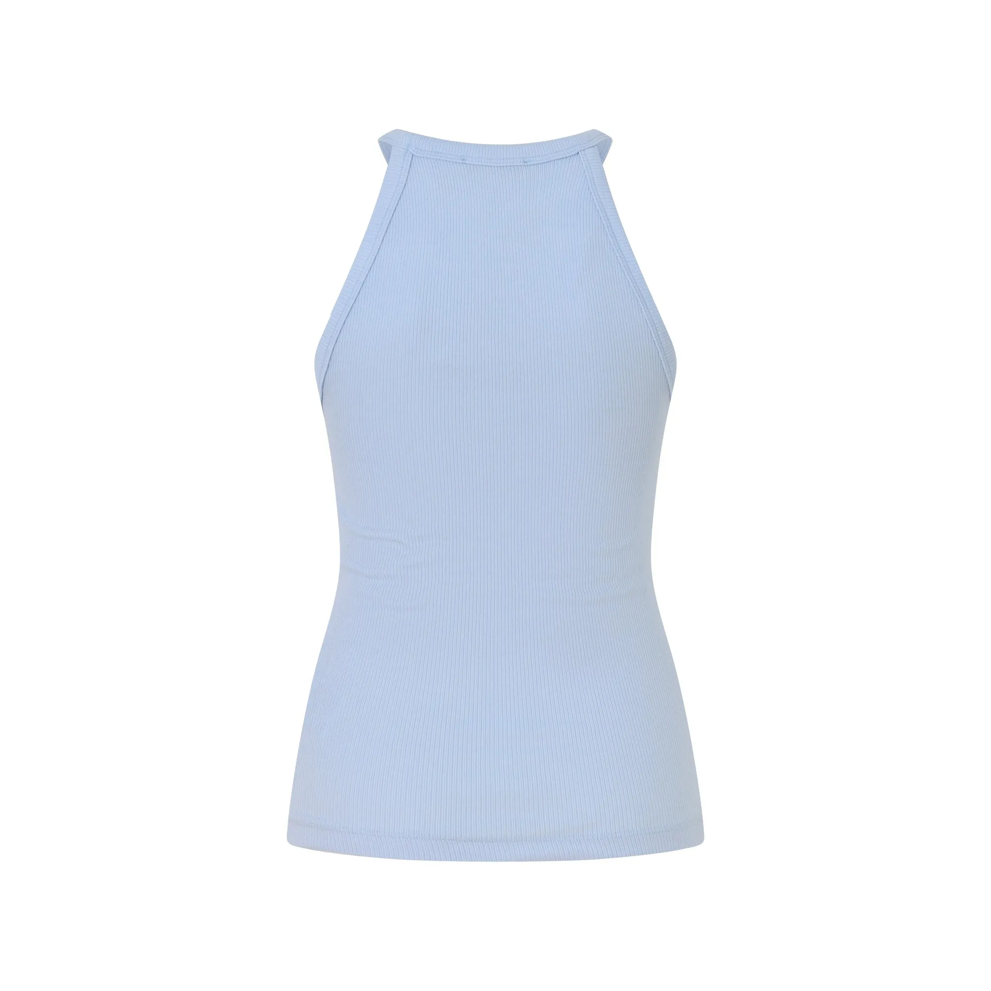 Canotta a costine celeste per donna
