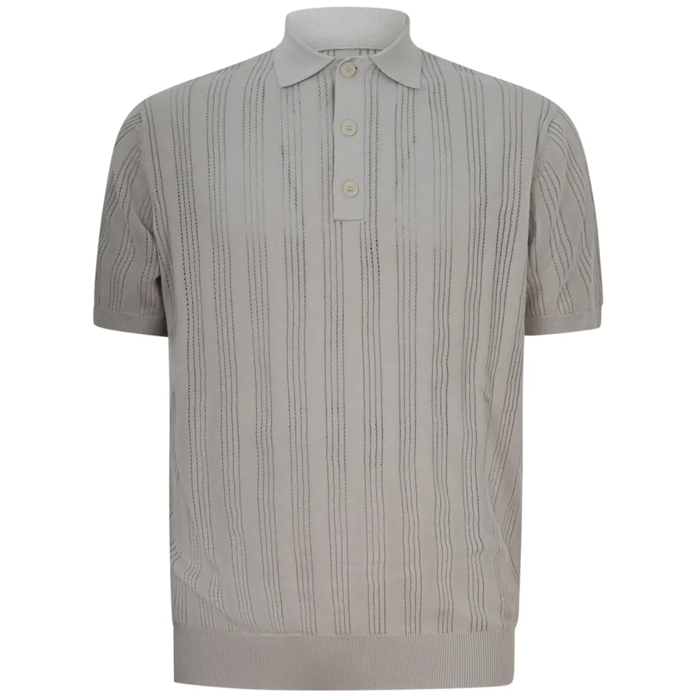 Polo in maglia traforata beige per uomo