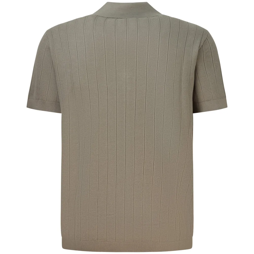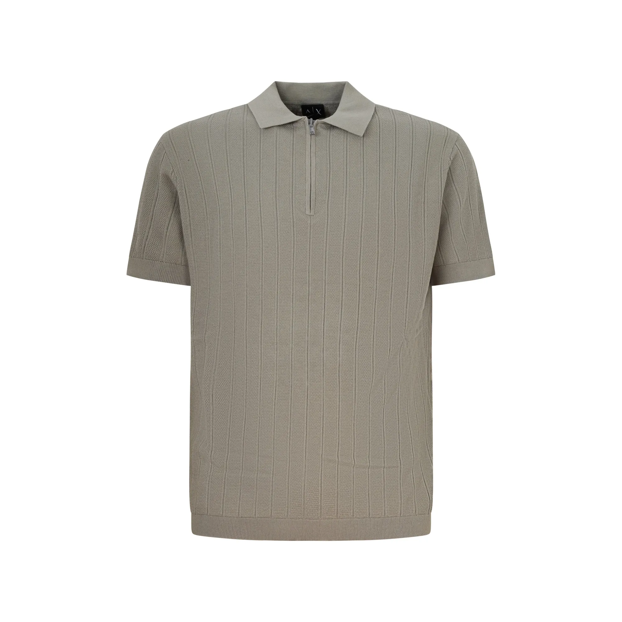 Polo in maglia beige con mezza zip per uomo