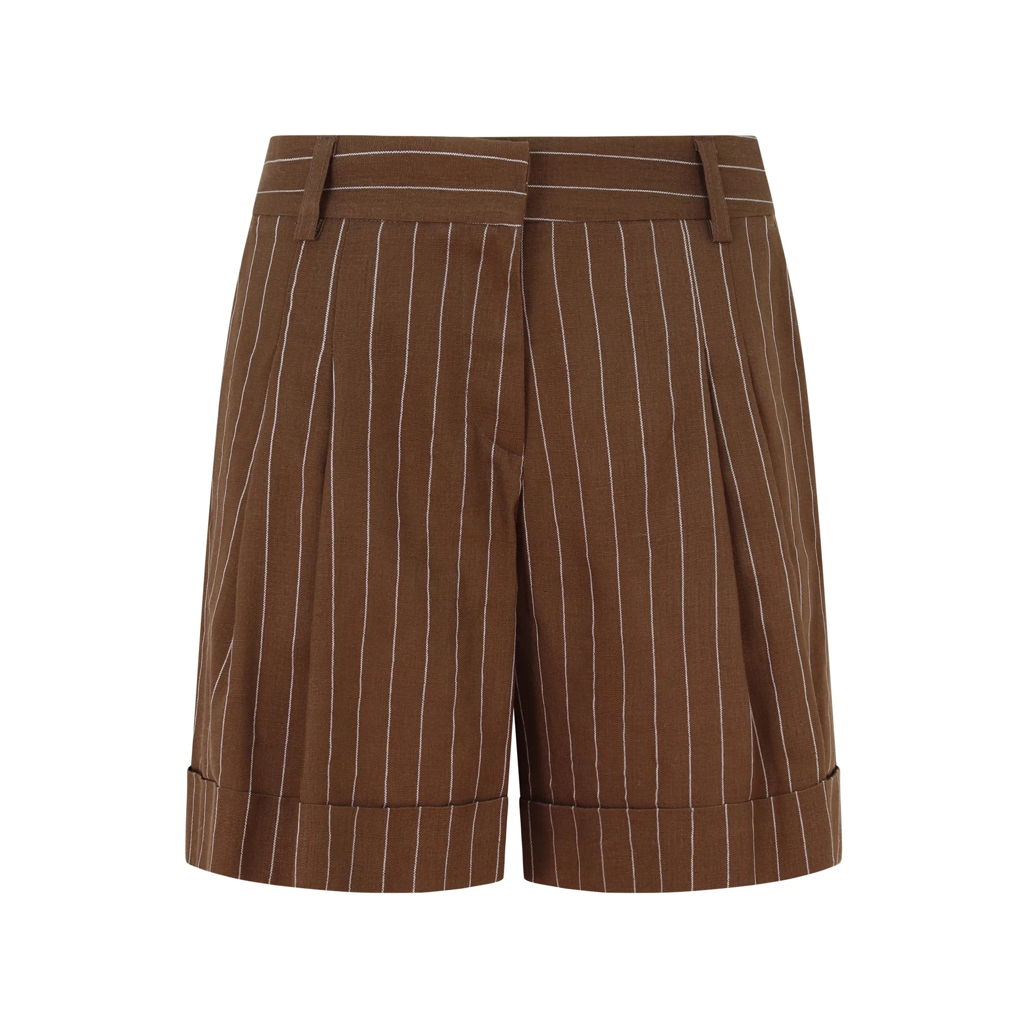 Pantaloncino gessato marrone per donna