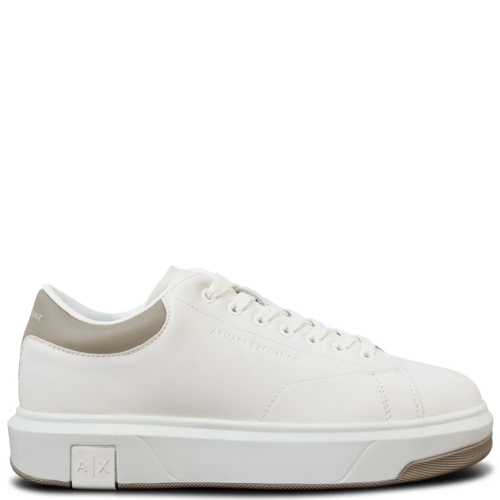 Sneakers bianche e beige con mini logo per uomo