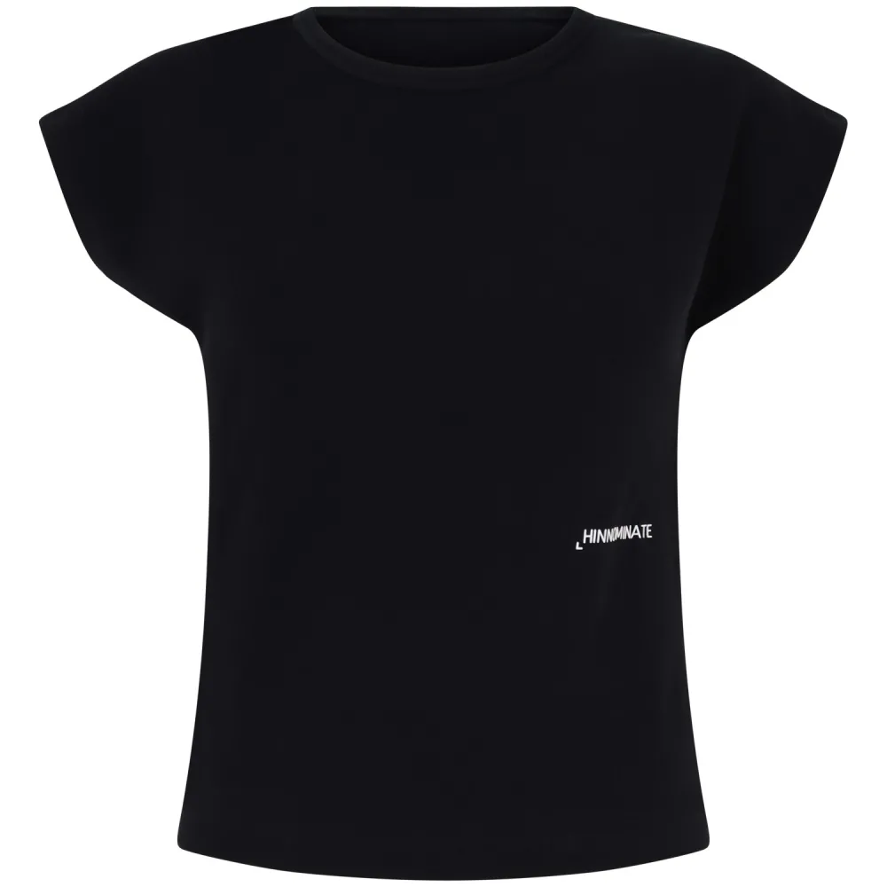 T-shirt a costine nera per donna