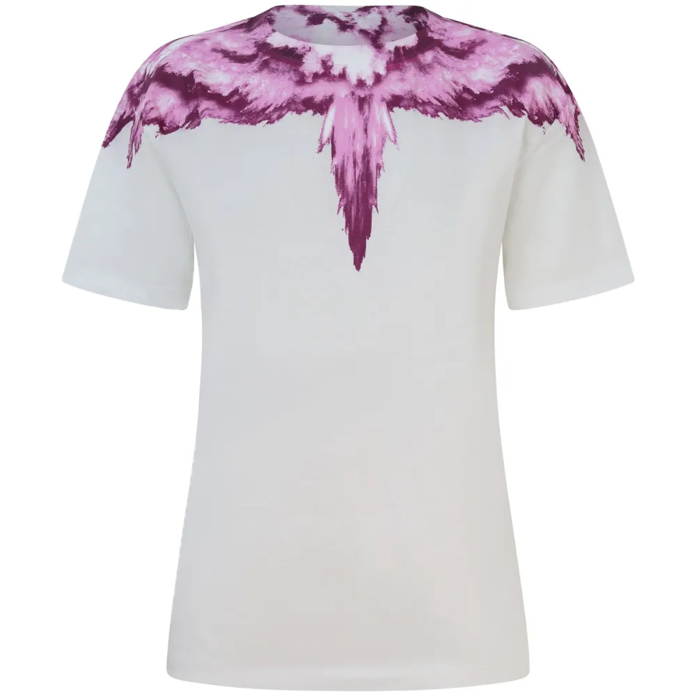 T-shirt bianca con ali colorate per donna