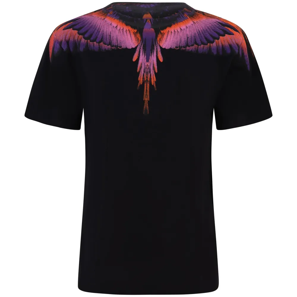 T-shirt nera con ali colorate per donna