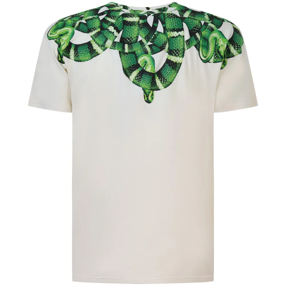 T-shirt avorio con stampa verde per uomo