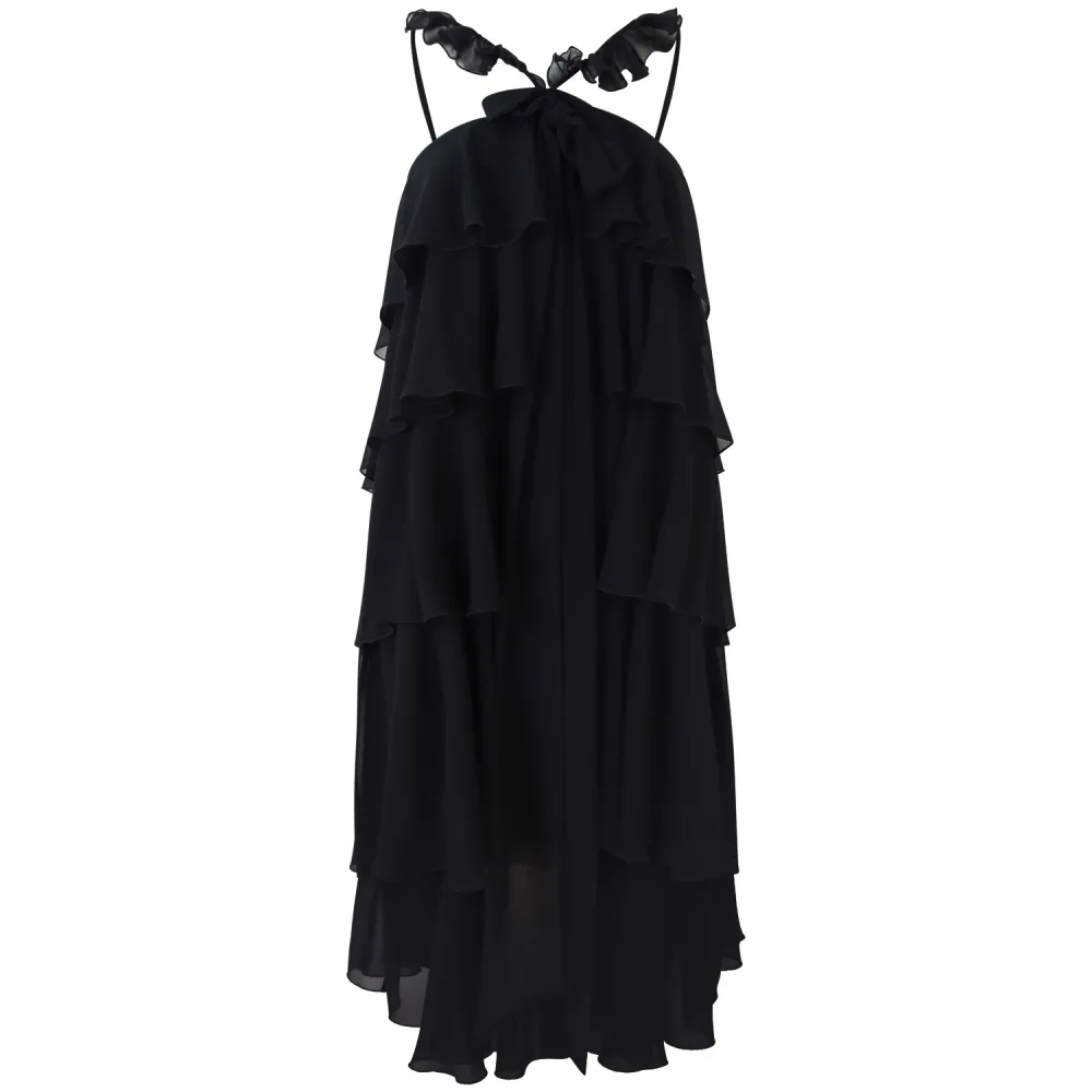 Abito nero con balze 'TEODORA' per donna