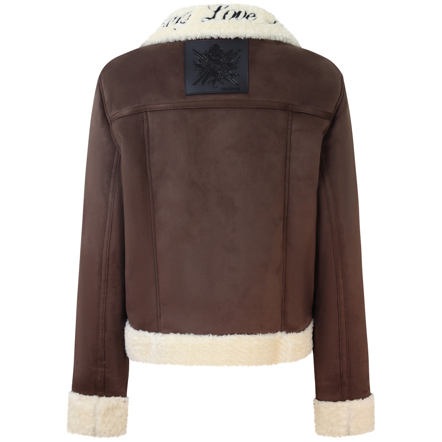 - Collo in pelliccia con logo nero ricamato