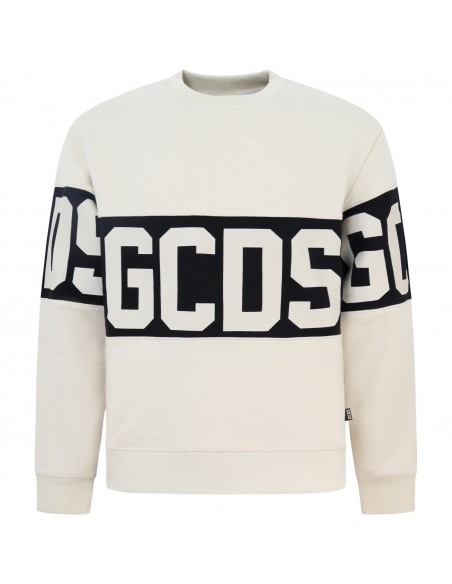 Felpa beige con logo per uomo